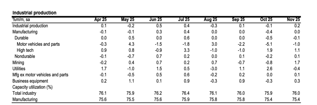 • October-November IP data show growth in manufacturing moderating